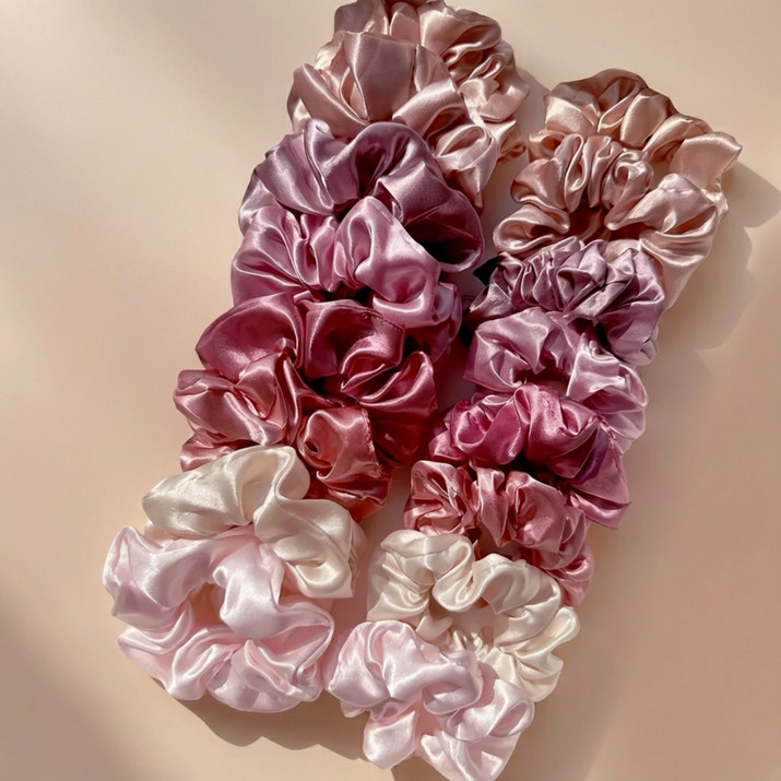 Pack de 16 Collets Satén para el Cabello – Satén Premium en Tonos Rosa y Café