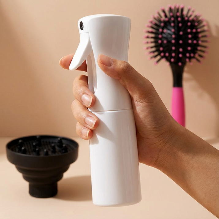 Respuesta 2: El atomizador de bruma fina permite refrescar e hidratar tus rizos sin mojar en exceso, lo que activa cremas y productos leave-in de manera óptima, ayudando a mantener la definición y el volumen a lo largo del día.