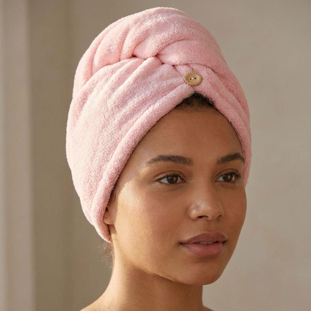 Respuesta 2: La toalla de microfibra está diseñada para absorber el exceso de agua suavemente y reducir el frizz y quiebre del cabello. Su diseño con botón facilita el uso del método 'plopping', lo que ayuda a mantener la forma y salud de los rizos durante el secado.