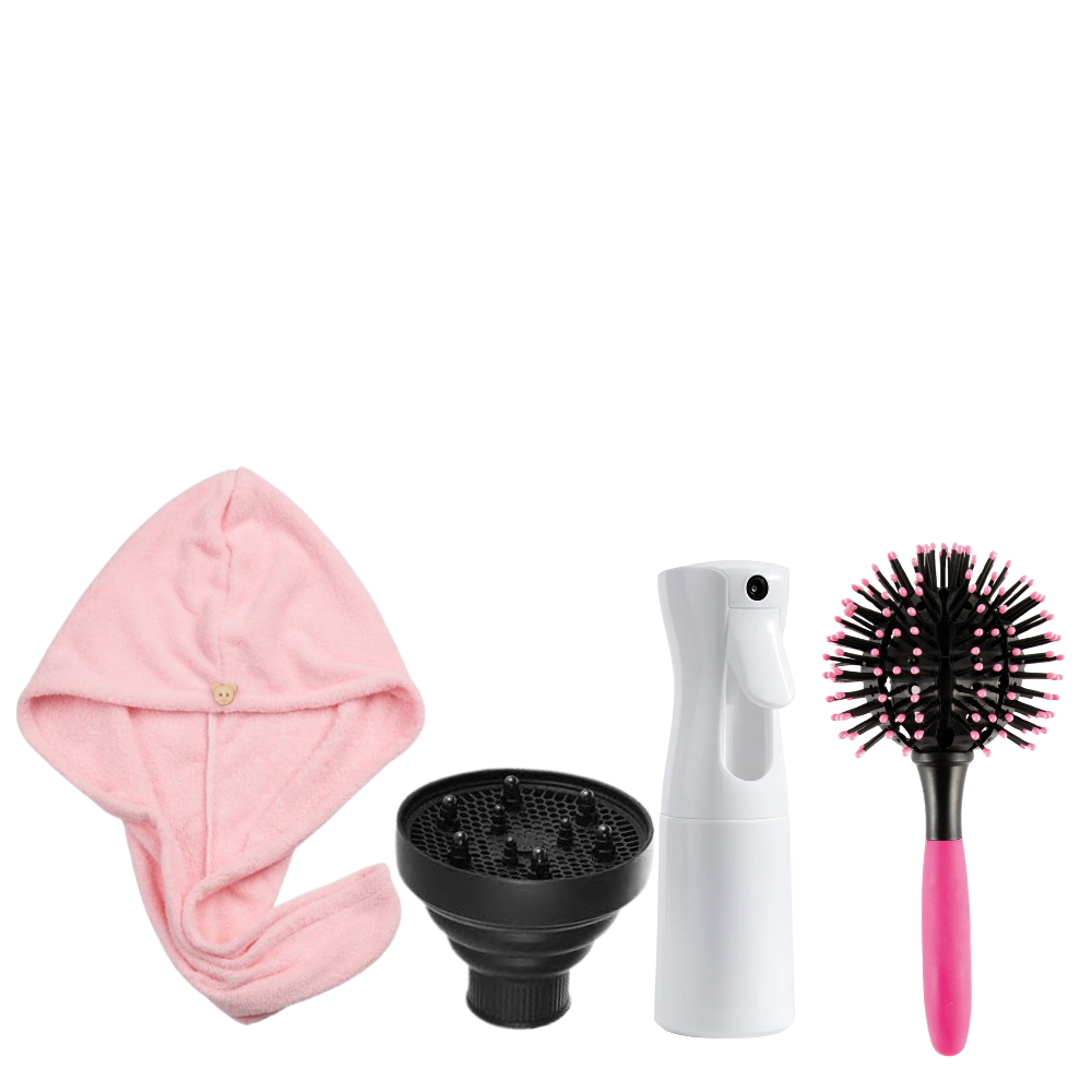 Pack Volumen & Definición – Toalla de Microfibra + Difusor + Atomizador + Cepillo Voluminizador 360°